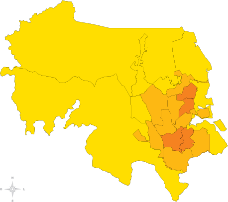 | é a diferença proporcional entre o menor e o maior valor para este indicador entre as unidades geográficas. |