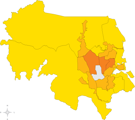| é a diferença proporcional entre o menor e o maior valor para este indicador entre as unidades geográficas. |