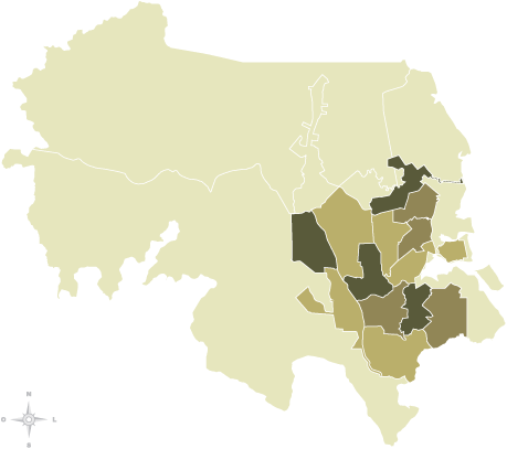 | é a diferença proporcional entre o menor e o maior valor para este indicador entre as unidades geográficas. |