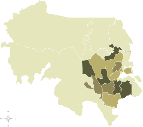 | é a diferença proporcional entre o menor e o maior valor para este indicador entre as unidades geográficas. |