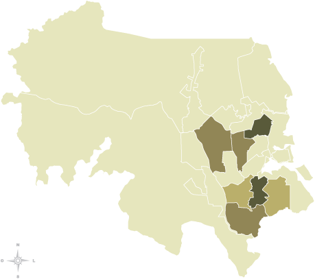 | é a diferença proporcional entre o menor e o maior valor para este indicador entre as unidades geográficas. |