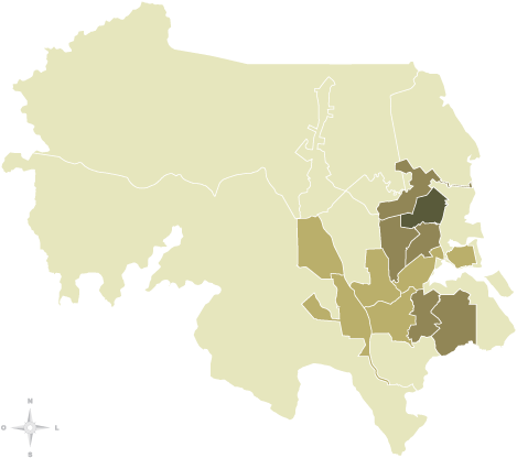 | é a diferença proporcional entre o menor e o maior valor para este indicador entre as unidades geográficas. |