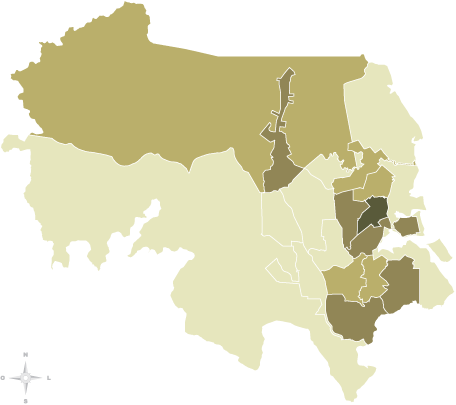 | é a diferença proporcional entre o menor e o maior valor para este indicador entre as unidades geográficas. |