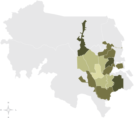 | é a diferença proporcional entre o menor e o maior valor para este indicador entre as regionais administrativas. |