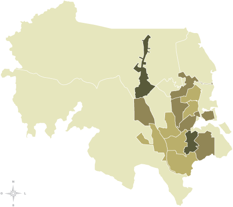 | é a diferença proporcional entre o menor e o maior valor para este indicador entre as unidades geográficas. |