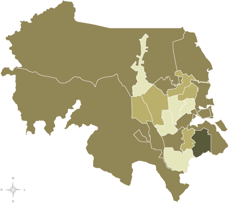 | é a diferença proporcional entre o menor e o maior valor para este indicador entre as unidades geográficas. |