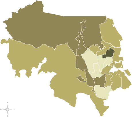 | é a diferença proporcional entre o menor e o maior valor para este indicador entre as unidades geográficas. |